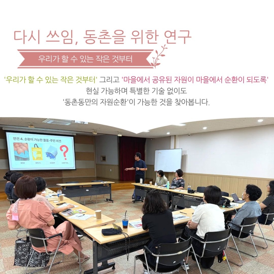 "¿ì¸®´Â '´Ù½Ã ¾²ÀÓ, µ¿ÃÌ' ÀçȰ¿ëÁ¤°ÅÀå ¿øÆÀ(one team)ÀÔ´Ï´Ù" 9¿ù 5ÀÏ(±Ý) ¿ÀÀü 10½Ã, µ¿Ã̺¹Áö°ü¿¡¼´Â ÁÖ¹ÎÀÌ ¸ð¿© ¨ç¿ì¸®°¡ ÇÒ ¼ö ÀÖ´Â ÀÛÀº °ÍºÎÅÍ ¨è¸¶À»¿¡¼ °øÀ¯µÈ ÀÚ¿øÀÌ ¸¶À»¿¡¼ ¼øÈ¯ÀÌ µÇµµ·Ï ¨éµ¿Ã̵¿¸¸ÀÇ ÀÚ¿ø¼øÈ¯À» ã¾Æº¸¾Ò½À´Ï´Ù. °ð ÆîÃÄÁú '´Ù½Ã ¾²ÀÓ, µ¿ÃÌ' ÀÚ¿ø ¼øÈ¯ ¸¶À»À» ±â´ëÇØÁÖ¼¼¿ä!