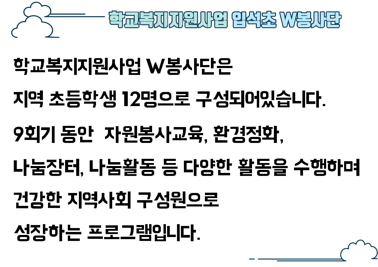 2022³â 4¿ù Çб³º¹ÁöÁö¿ø»ç¾÷ WºÀ»ç´Ü Ȱµ¿ÀÌ ½ÃÀ۵Ǿú½À´Ï´Ù. 12¸íÀÇ ºÀ»ç´Ü¿øµéÀÌ 4¿ùºÎÅÍ 11¿ù±îÁö ÃÑ 9ȸ µ¿¾È Áö¿ª»çȸ¿¡¼ ´Ù¾çÇÑ È°µ¿µéÀ» ¼öÇàÇÏ°Ô µË´Ï´Ù.