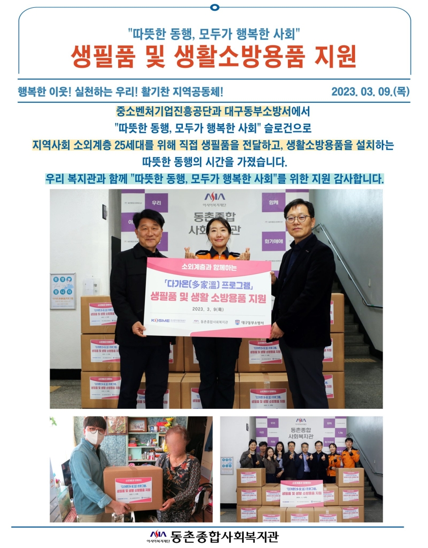 | »ýÇÊǰ ¹× »ýȰ¼Ò¹æ¿ëǰ Áö¿ø(Áß¼Òº¥Ã³±â¾÷ÁøÈï°ø´Ü, ´ë±¸µ¿ºÎ¼Ò¹æ¼) |