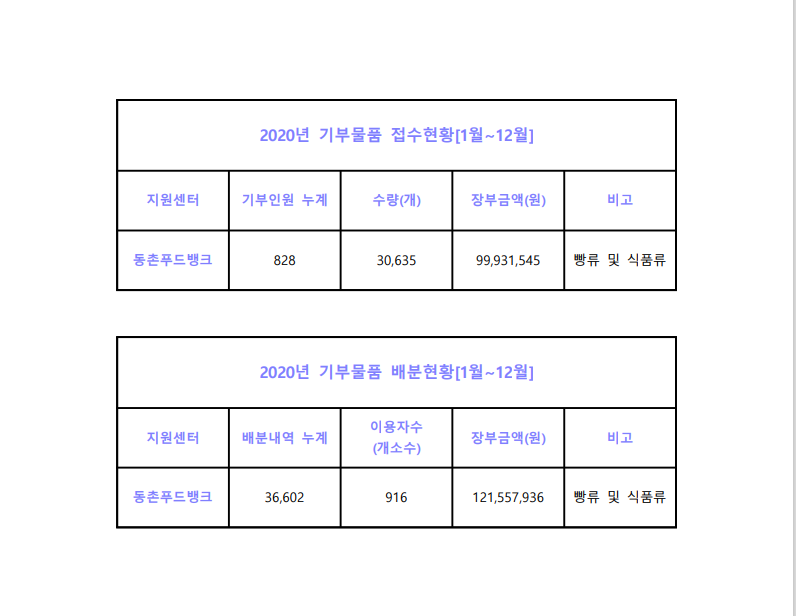 | 2020³â µ¿ÃÌǪµå¹ðÅ© ±âºÎ¹°Ç° Á¢¼öÇöȲ ¹× ¹èºÐÇöȲ |