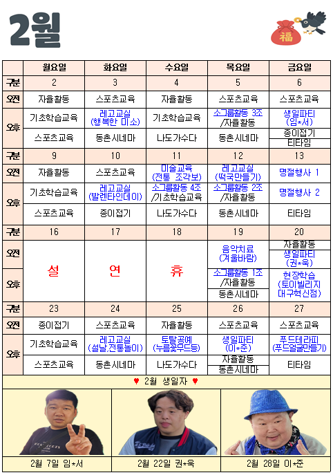 2¿ù ÇÁ·Î±×·¥ ¾È³»¹®ÀÔ´Ï´Ù.